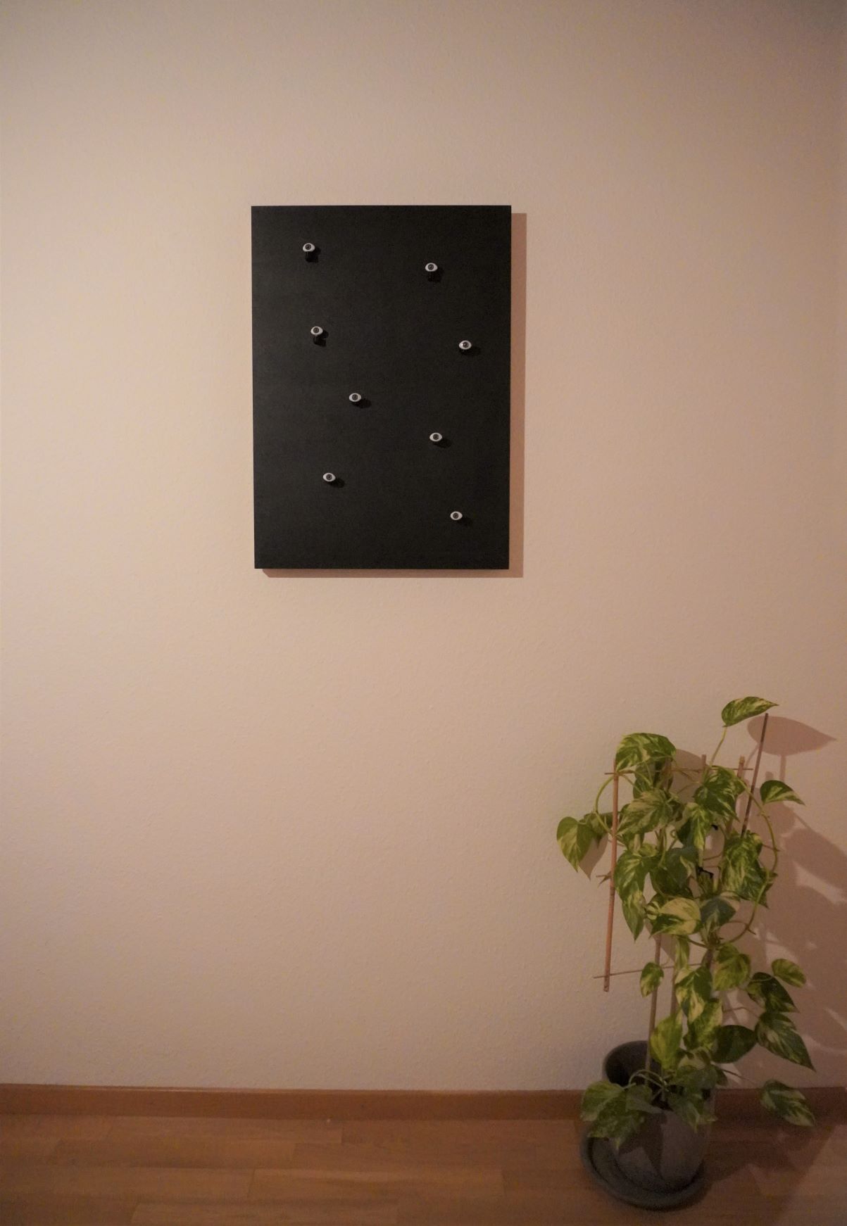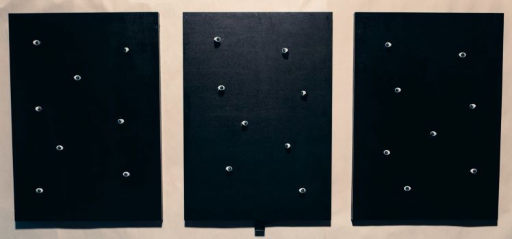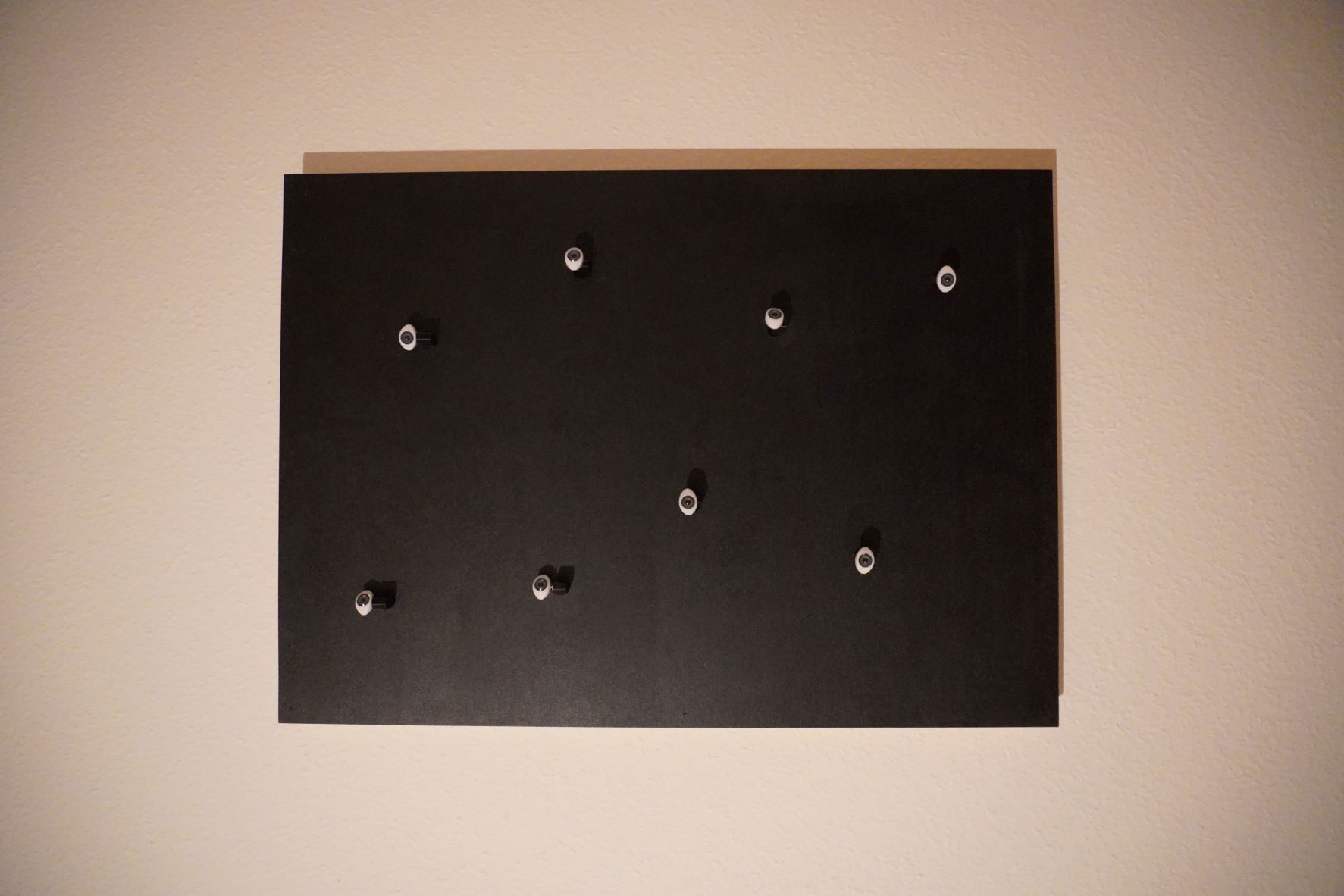 An interactive piece that explores our constant need for validation and attention. The gaze of the eyes follows moving people and objects.